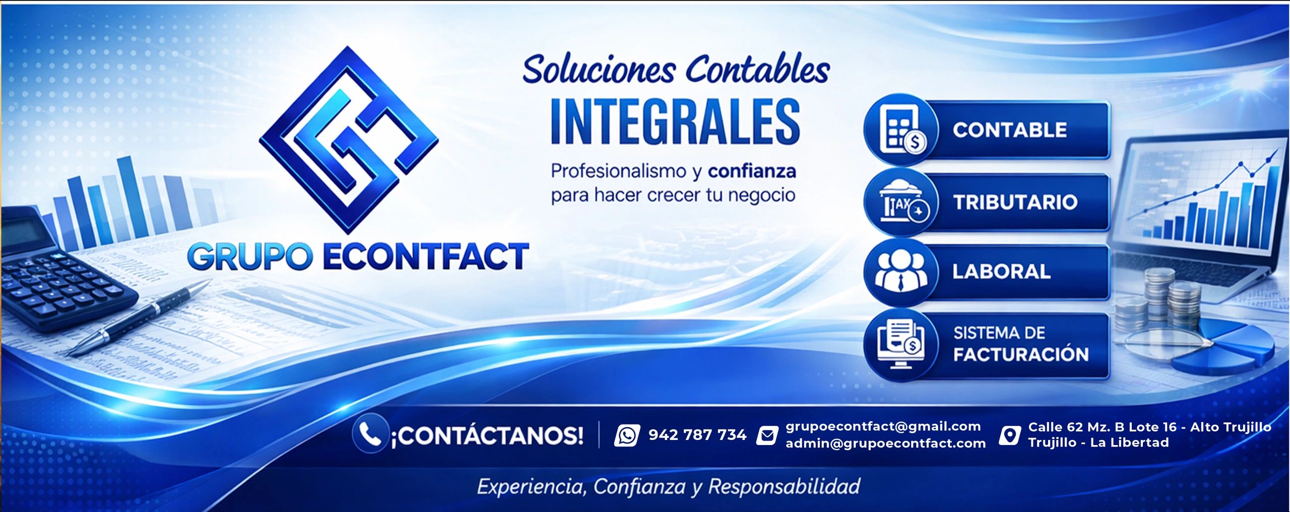 Somos una empresa dedicada a brindar servicio de asesoría contable, tributaria, laboral y financiera a pequeñas, medianas y grandes empresas.